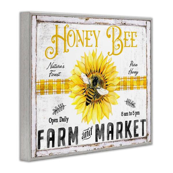 Rustic Honey Bee & Flower by Creatif Belle Gray Framed Animal Giclee Art Print 16 in. x 20 in.