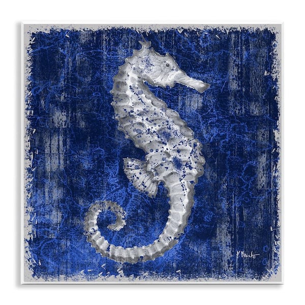 Rustic Indigo Seahorse by Paul Brent Unframed Coastal Graphic Art Print 12 in. x 12 in.
