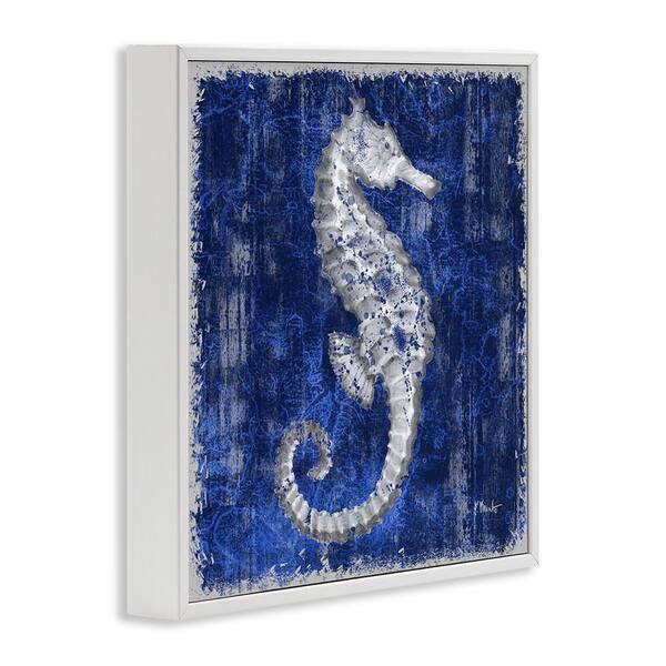 Rustic Indigo Seahorse by Paul Brent White Framed Coastal Giclee Art Print 12 in. x 12 in.