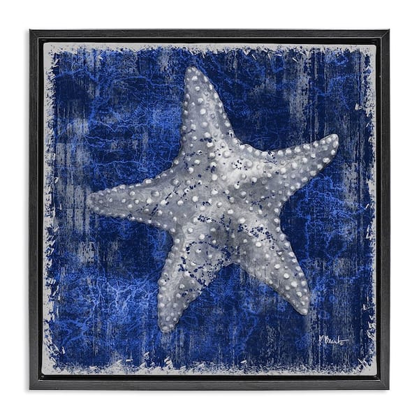 Rustic Indigo Starfish by Paul Brent Black Floater Frame Coastal Graphic Art Print 25 in. x 25 in.