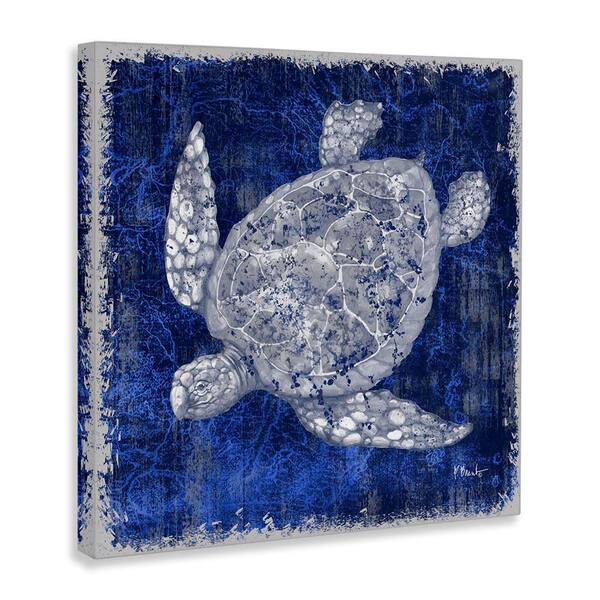 Rustic Indigo Turtle by Paul Brent Unframed Coastal Graphic Art Print 24 in. x 24 in.