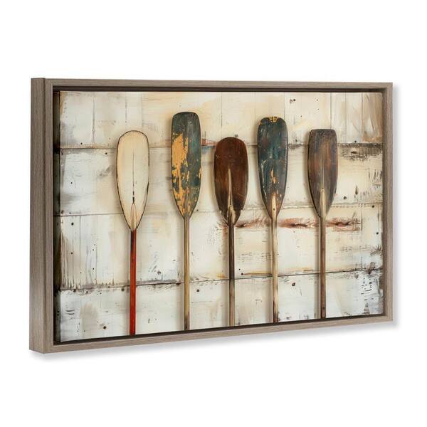 Rustic Oar Lineup by Arlington Prints Brown Floater Frame Coastal Graphic Art Print 21 in. x 31 in.