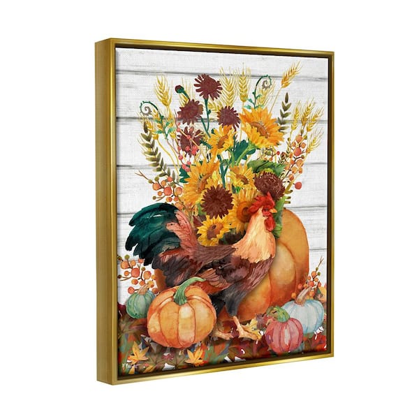 Rustic Sunflowers and Hen by Paul Brent 1 Piece Floater Frame Graphic Print Animal Poster Art Print 21 in. x 17 in.