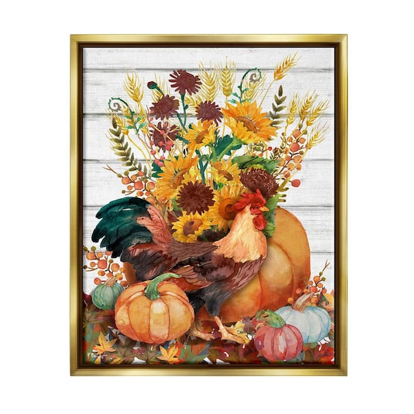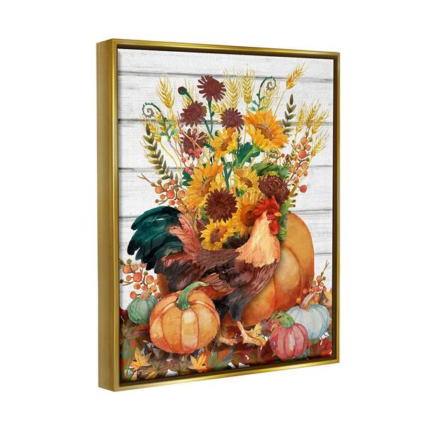 Rustic Sunflowers and Hen by Paul Brent 1 Piece Floater Frame Graphic Print Animal Poster Art Print 31 in. x 25 in.