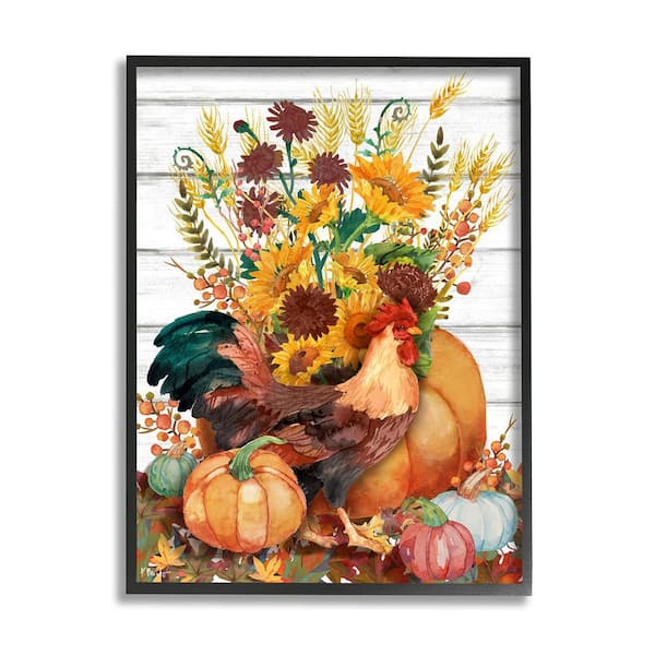 Rustic Sunflowers and Hen by Paul Brent 1 Piece Framed Graphic Print Animal Poster Art Print 30 in. x 24 in.
