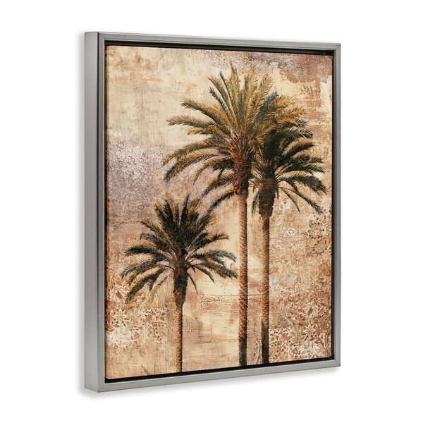 Rustic Vintage Palms by Elizabeth Wright Gray Floater Frame Nature Graphic Art Print 31 in. x 25 in.