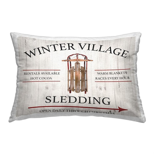 Rustic Winter Sledding Beige Rectangular Outdoor Throw Pillow
