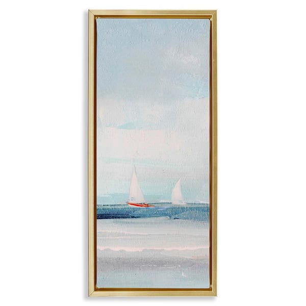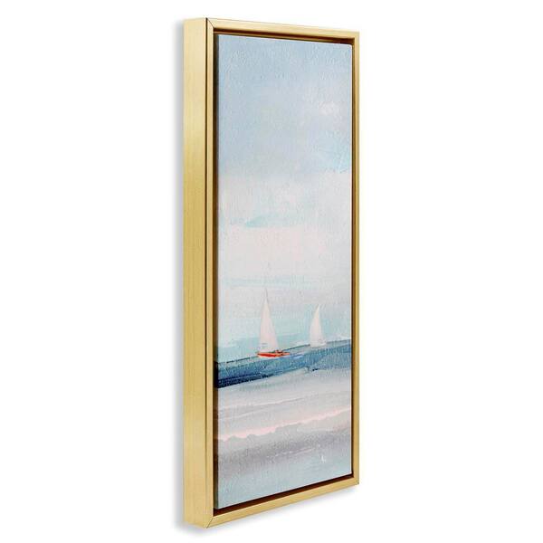 Sailboat Pair Floating by Sally Swatland Gold Floater Frame Coastal Graphic Art Print 25 in. x 11 in.