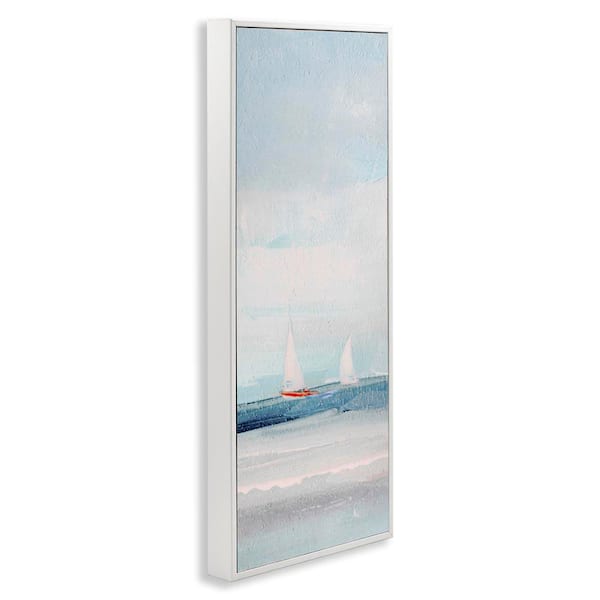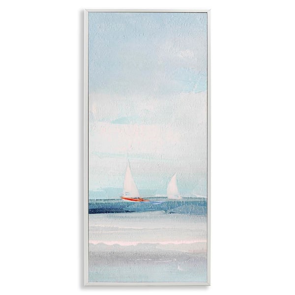 Sailboat Pair Floating by Sally Swatland White Framed Coastal Giclee Art Print 30 in. x 13 in.