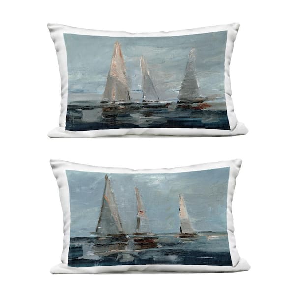 Sailboat Seascape Impressions Grey Rectangular Outdoor Throw Pillow 2-Pack