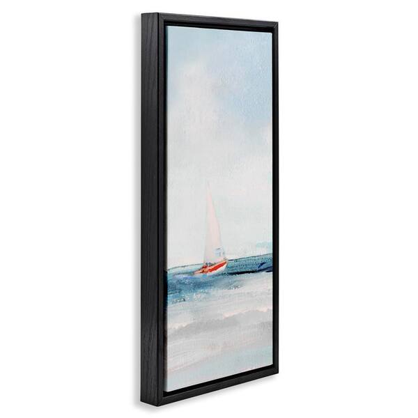 Sailboat in Distance by Sally Swatland Black Floater Frame Coastal Graphic Art Print 31 in. x 15 in.