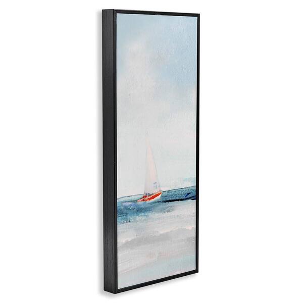 Sailboat in Distance by Sally Swatland Black Framed Coastal Giclee Art Print 24 in. x 10 in.