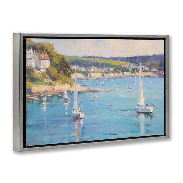 Sailboats Of The Shore by LSR Design Studio Gray Floater Frame Coastal Graphic Art Print 17 in. x 25 in.