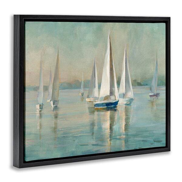 Sailboats at Sunrise by Danhui Nai Black Floater Frame Coastal Graphic Art Print 17 in. x 21 in.