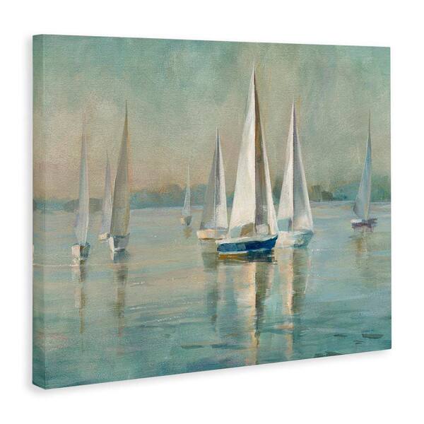 Sailboats at Sunrise by Danhui Nai Unframed Coastal Graphic Art Print 30 in. x 40 in.