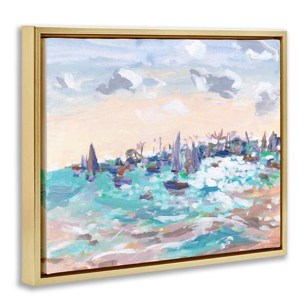 Sailboats in Rushing Waves by Melissa Wang Gold Floater Frame Coastal Graphic Art Print 25 in. x 31 in.