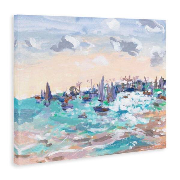 Sailboats in Rushing Waves by Melissa Wang Unframed Coastal Graphic Art Print 36 in. x 48 in.