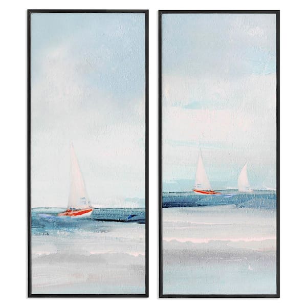 Sailboats near Shoreline by Sally Swatland 2 Pieces Black Framed Coastal Giclee Art Print 30 in. x 13 in.