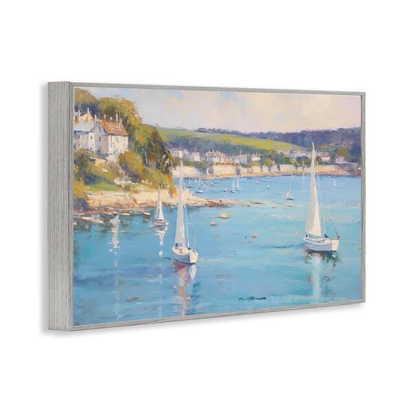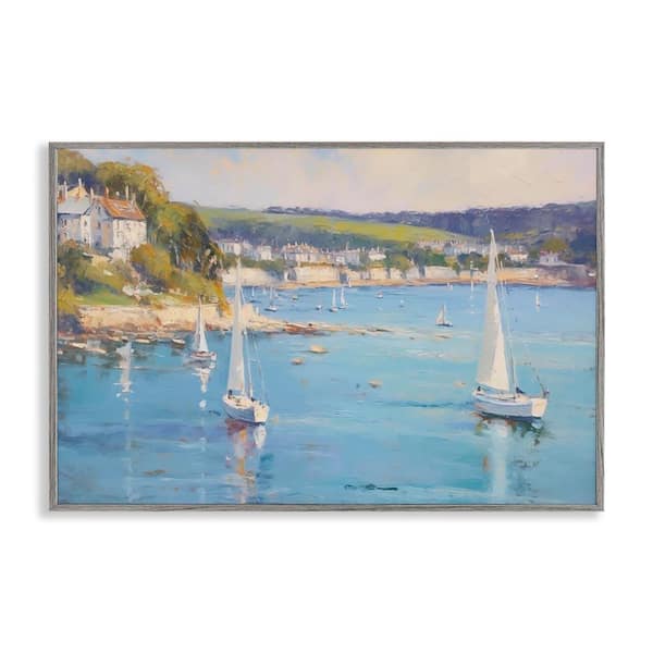 Sailboats of the Shore by LSR Design Studio Gray Framed Coastal Giclee Art Print 12 in. x 18 in.