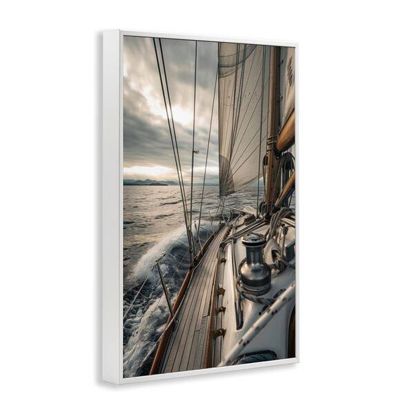 Sailing Boat Wake Waves by LSR Design Studio White Framed Typography Giclee Art Print 24 in. x 16 in.