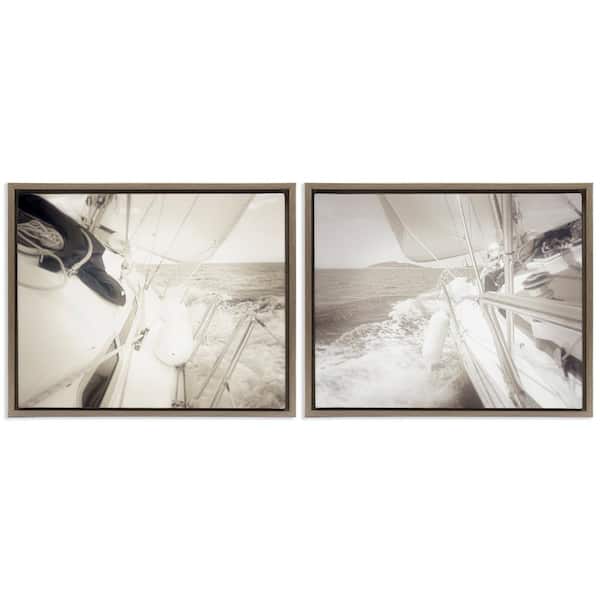 Sailing Clear Summer Day by Graffi*tee Studios 2 Pieces Brown Floater Frame Coastal Graphic Art Print 17 in. x 21 in.