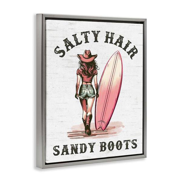 Salty Hair & Sandy Boots by Lettered and Lined Gray Floater Frame People Graphic Art Print 21 in. x 17 in.