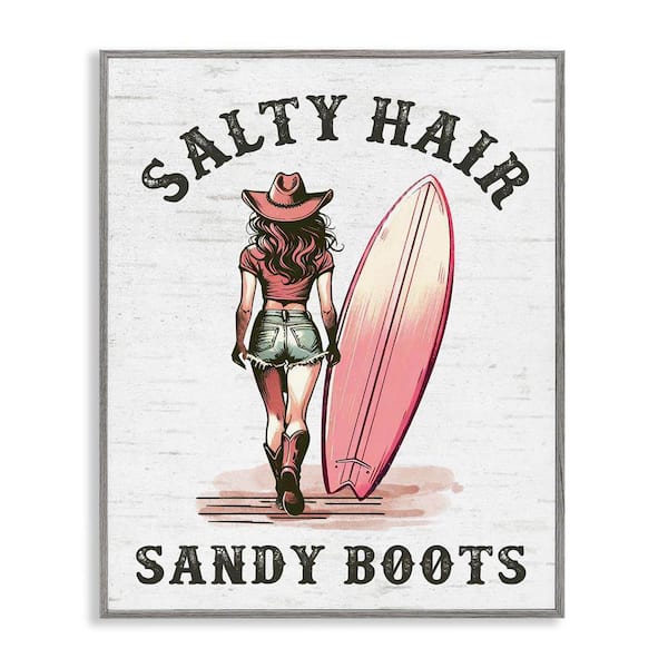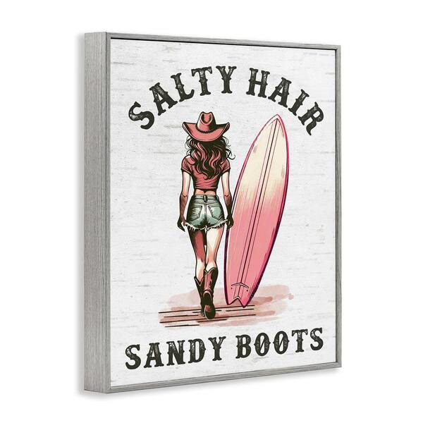 Salty Hair and Sandy Boots by Lettered and Lined Gray Framed People Giclee Art Print 20 in. x 16 in.