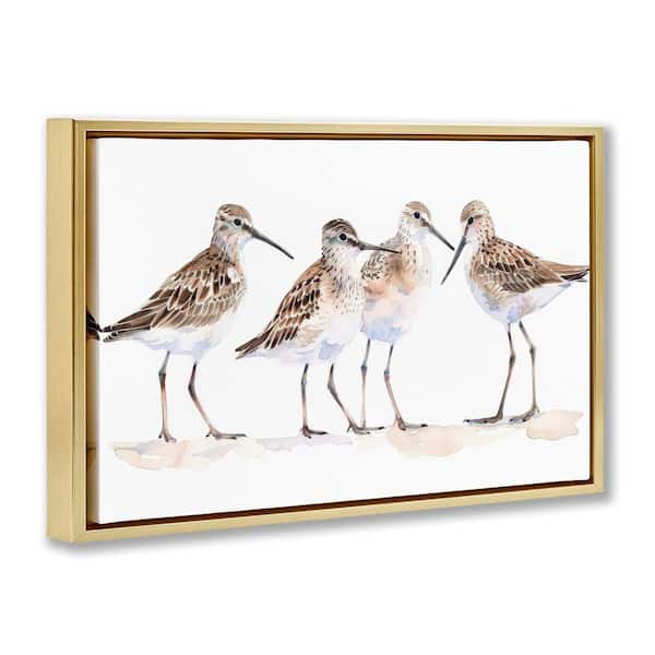 Sand Pipers Gathered by Petal Prints Design Gold Floater Frame Animal Graphic Art Print 17 in. x 25 in.