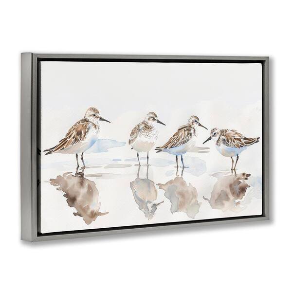 Sandpipers Shore Reflection by Petal Prints Design Gray Floater Frame Animal Graphic Art Print 17 in. x 25 in.