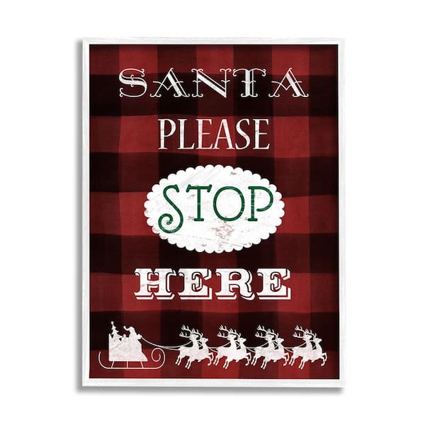Santa Stop Here Plaid by Carol Robinson 1-Piece Framed Graphic Print Typography Poster Art Print 30 in. x 24 in.