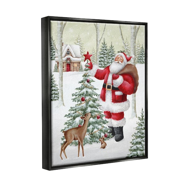 Santa and Snowy Cabin by Emma Leach 1 Piece Floater Frame Graphic Print Nature Poster Art Print 21 in. x 17 in.