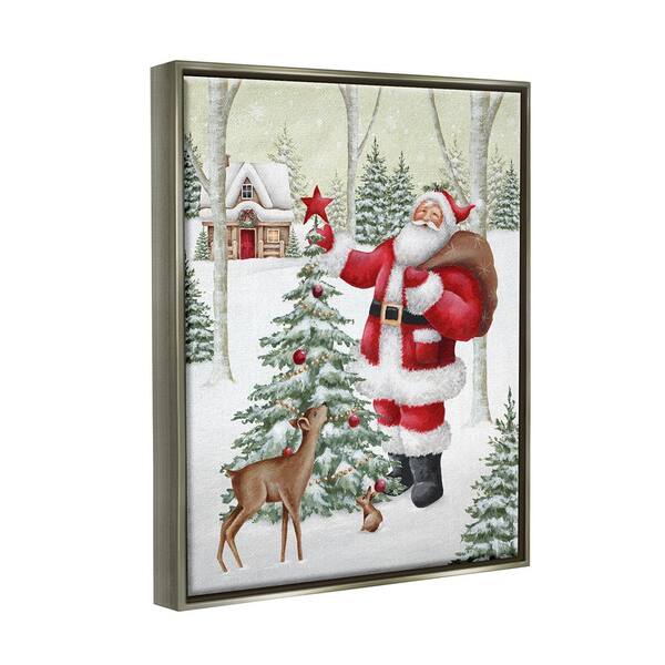Santa and Snowy Cabin by Emma Leach 1 Piece Floater Frame Graphic Print Nature Poster Art Print 21 in. x 17 in.