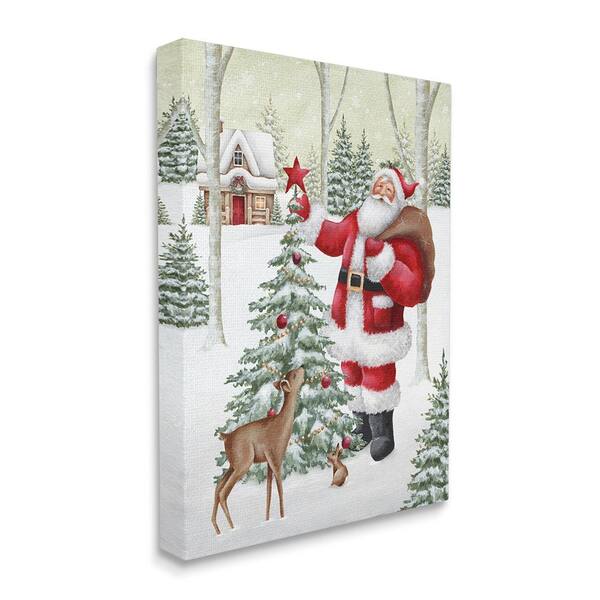Santa and Snowy Cabin by Emma Leach 1-Piece Unframed Graphic Print Nature Poster Art Print 48 in. x 36 in.