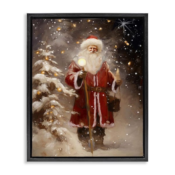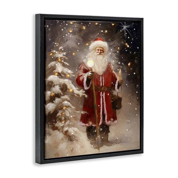 Santa in Snowy Night Scene by Ramona Murdock 1-Piece Floater Frame Graphic Print People Poster Art Print 21 in. x 17 in.