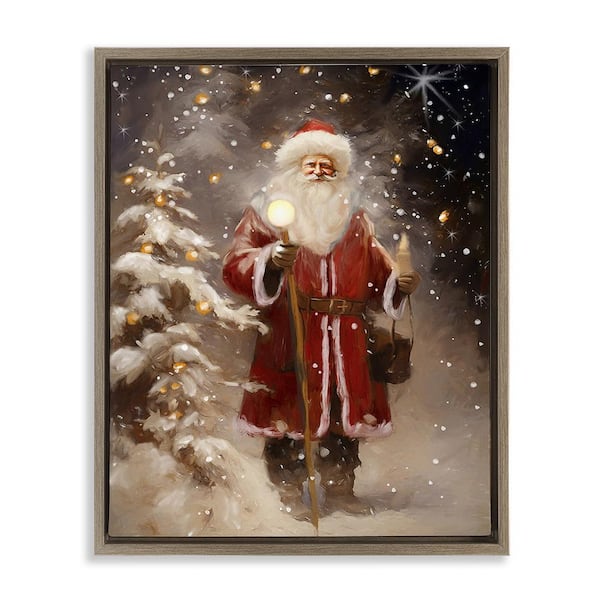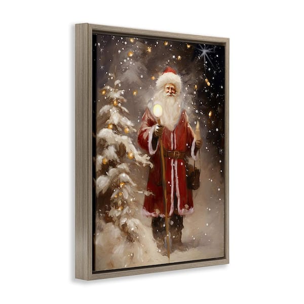 Santa in Snowy Night Scene by Ramona Murdock 1-Piece Floater Frame Graphic Print People Poster Art Print 31 in. x 25 in.