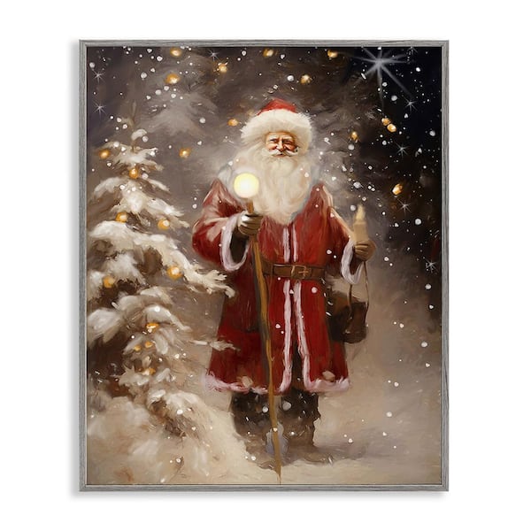 Santa in Snowy Night Scene by Ramona Murdock 1-Piece Framed Graphic Print People Poster Art Print 20 in. x 16 in.