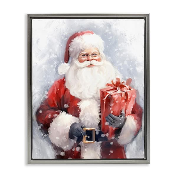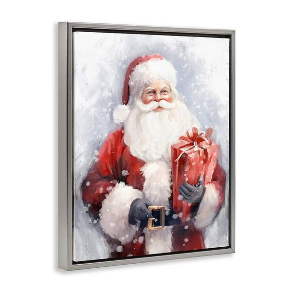 Santa with Red Gift by Ramona Murdock 1-Piece Floater Frame Graphic Print People Poster Art Print 31 in. x 25 in.