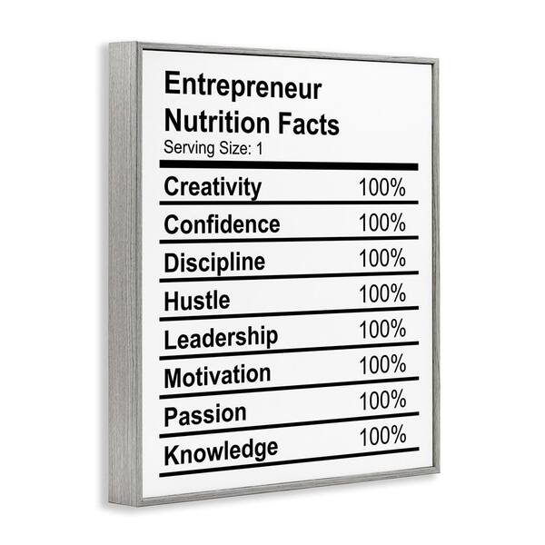 Sassy Entrepreneur Nutrition Facts by Daphne Polselli Gray Framed Typography Giclee Art Print 30 in. x 24 in.