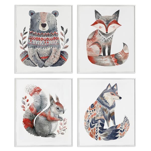 Scandinavian Forest Animals by LSR Design Studio 4 Pieces White Framed Animal Giclee Art Print 20 in. x 16 in.