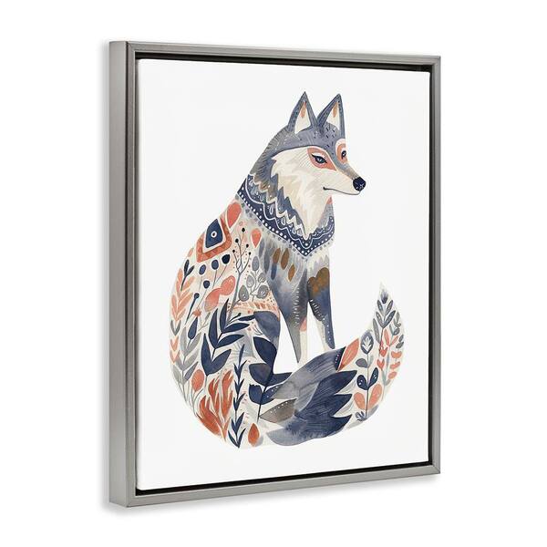 Scandinavian Style Wolf by LSR Design Studio Gray Floater Frame Animal Graphic Art Print 21 in. x 17 in.