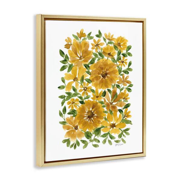 Scattered Sunflower Blooms by Yvette St. Amant Gold Floater Frame Nature Graphic Art Print 31 in. x 25 in.