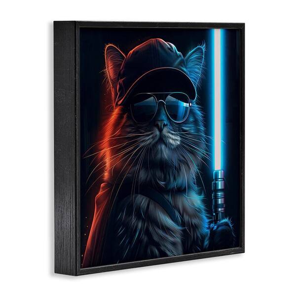 Sci-Fi Cat with Glowing Saber by Jim Baldwin Black Framed Fantasy Giclee Art Print 17 in. x 17 in.