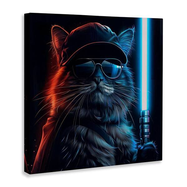 Sci-Fi Cat with Glowing Saber by Jim Baldwin Unframed Fantasy Graphic Art Print 24 in. x 24 in.
