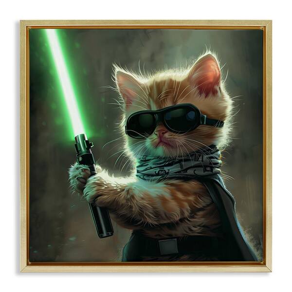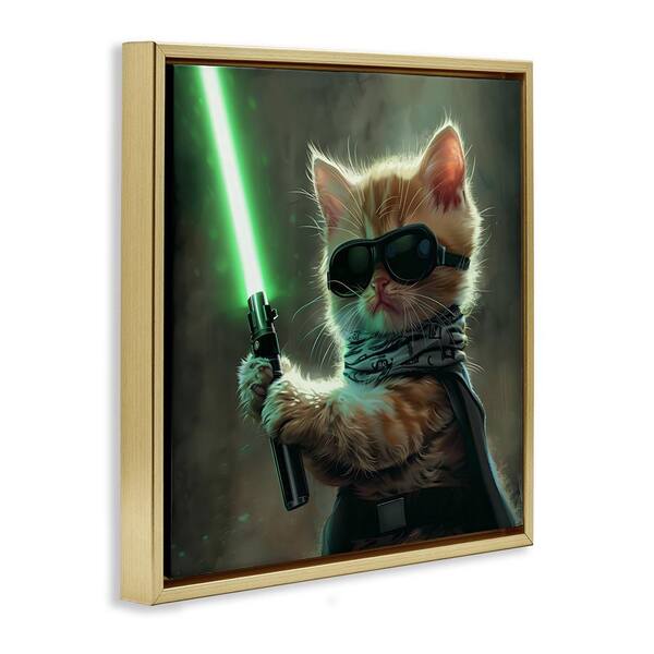 Sci-Fi Kitten with Saber by Jim Baldwin Gold Floater Frame Fantasy Graphic Art Print 18 in. x 18 in.