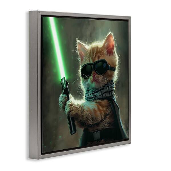 Sci-Fi Kitten with Saber by Jim Baldwin Gray Floater Frame Fantasy Graphic Art Print 25 in. x 25 in.