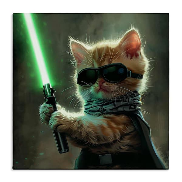 Sci-Fi Kitten with Saber by Jim Baldwin Unframed Fantasy Graphic Art Print 36 in. x 36 in.