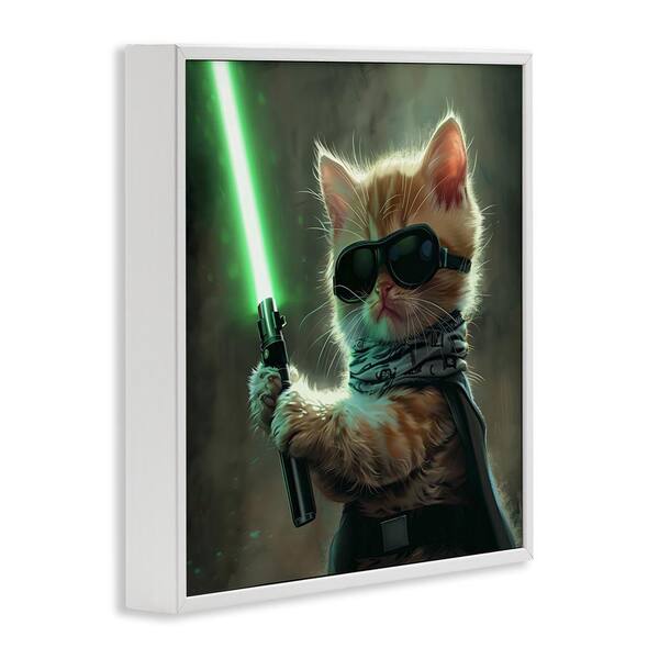 Sci-Fi Kitten with Saber by Jim Baldwin White Framed Fantasy Giclee Art Print 12 in. x 12 in.