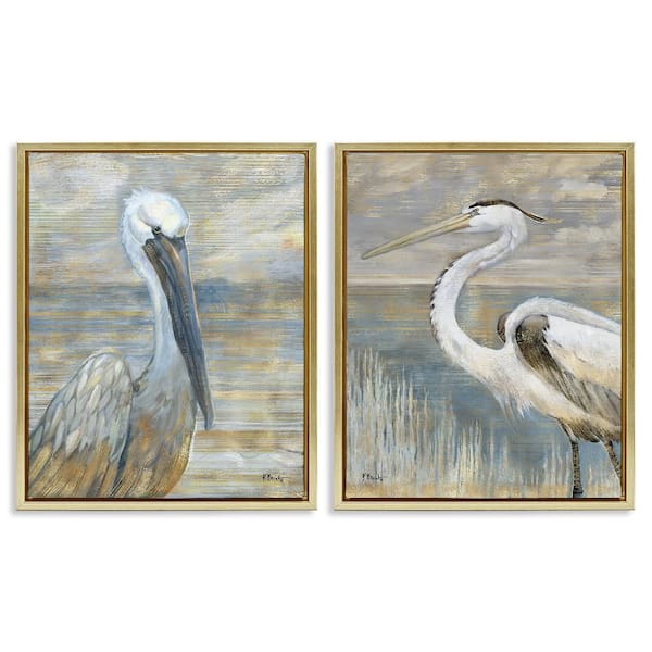 Sea Birds Abstract Beach by Paul Brent 2-Piece Gold Floater Frame Animal Graphic Art Print 25 in. x 31 in.