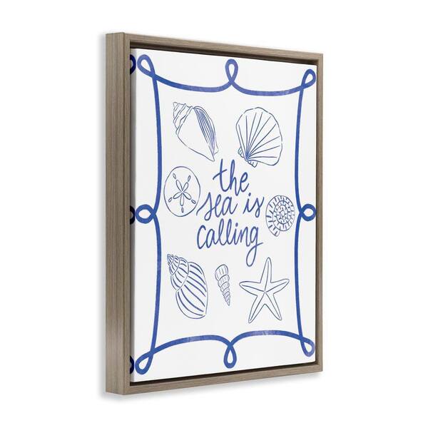 Sea Is Calling with Shells by Taylor Shannon Designs Brown Floater Frame Coastal Graphic Art Print 21 in. x 17 in.