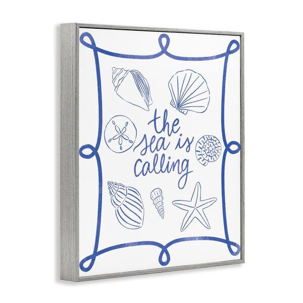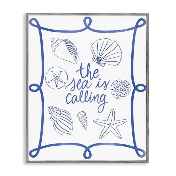 Sea Is Calling with Shells by Taylor Shannon Designs Gray Framed Coastal Giclee Art Print 14 in. x 11 in.